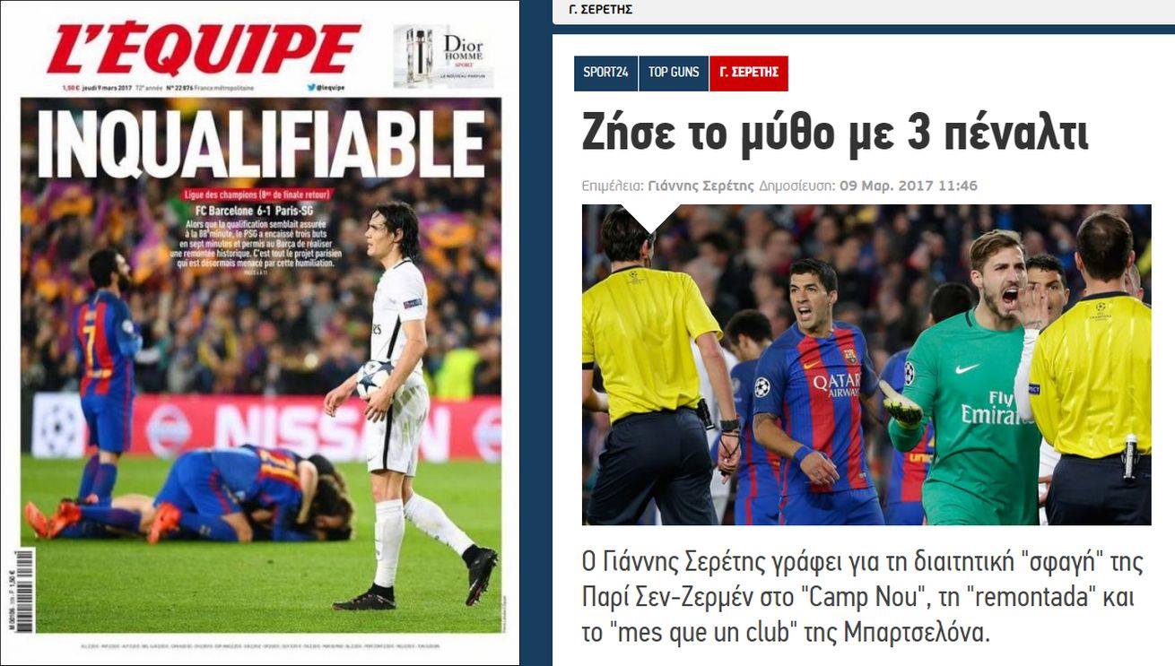 Η γαλλική L'Equipe βγαίνει με πρωτοσέλιδο τίτλο "Ανείπωτο" και με αναφορά σε ντροπιαστική εμφάνιση της PSG.